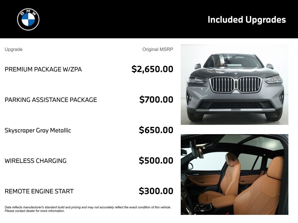 Discover the power and efficiency of the 2.0L I4 TwinPower Turbo engine, paired with an 8-Speed Automatic Sport transmission and BMW's renowned xDrive All-Wheel Drive system. With an impressive EPA-estimated 21 MPG in the city and 28 MPG on the highway, this X3 delivers the performance and fuel economy you desire.